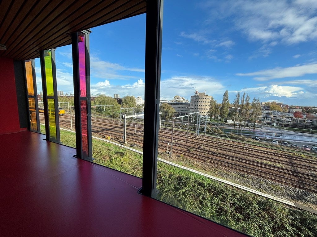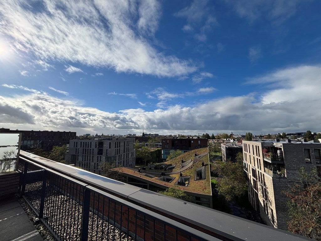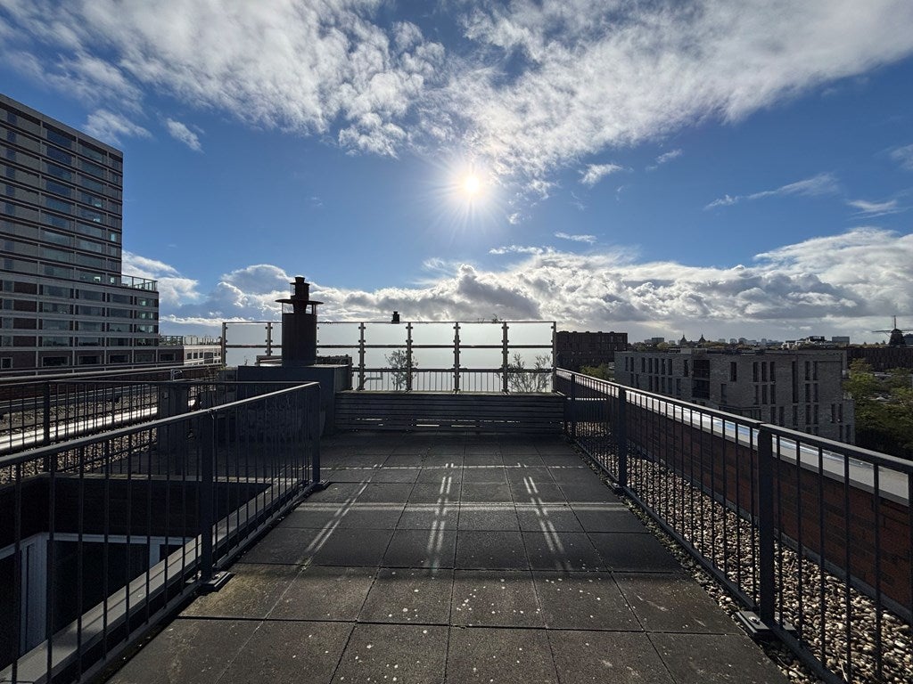 In het Funenpark in Amsterdam ligt dit lichte en heldere topetage appartement van ongeveer 80 m2. Het appartement beschikt over één slaapkamer en heeft een open woonkamer/eetkamer met een moderne, volledig uitgeruste keuken. De badkamer is voorzien van een wastafel, aparte douche en een bad. Het zonovergoten dakterras biedt een lounge en uitzicht op het stadscentrum. Het complex heeft een gemee…