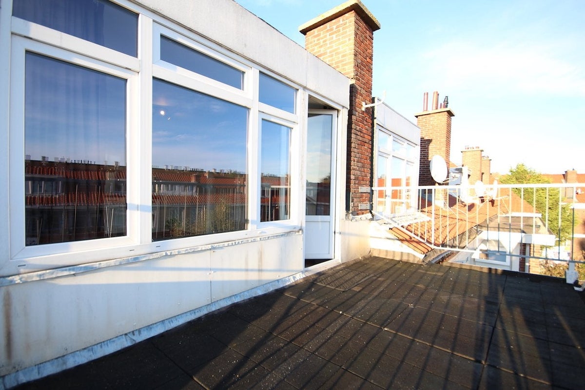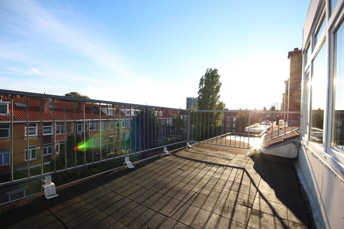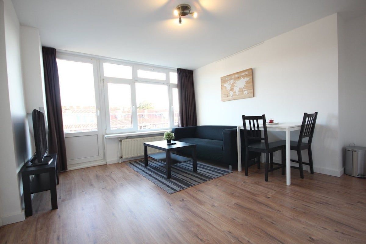 Beautiful 2 room apartment with large roof terrace (approx 10m2 facing southeast). This apartment is about 6 minutes walking distance from Moerwijk train station with train, tram and bus connection! Within 15 minutes you arrive from this apartment at The Hague Central, Hague city center, Hague university or within 10 minutes at The Hague Hollandsspoor or Station Rijswijk. Delft, Rotterdam etc. …
