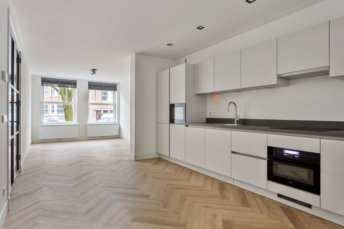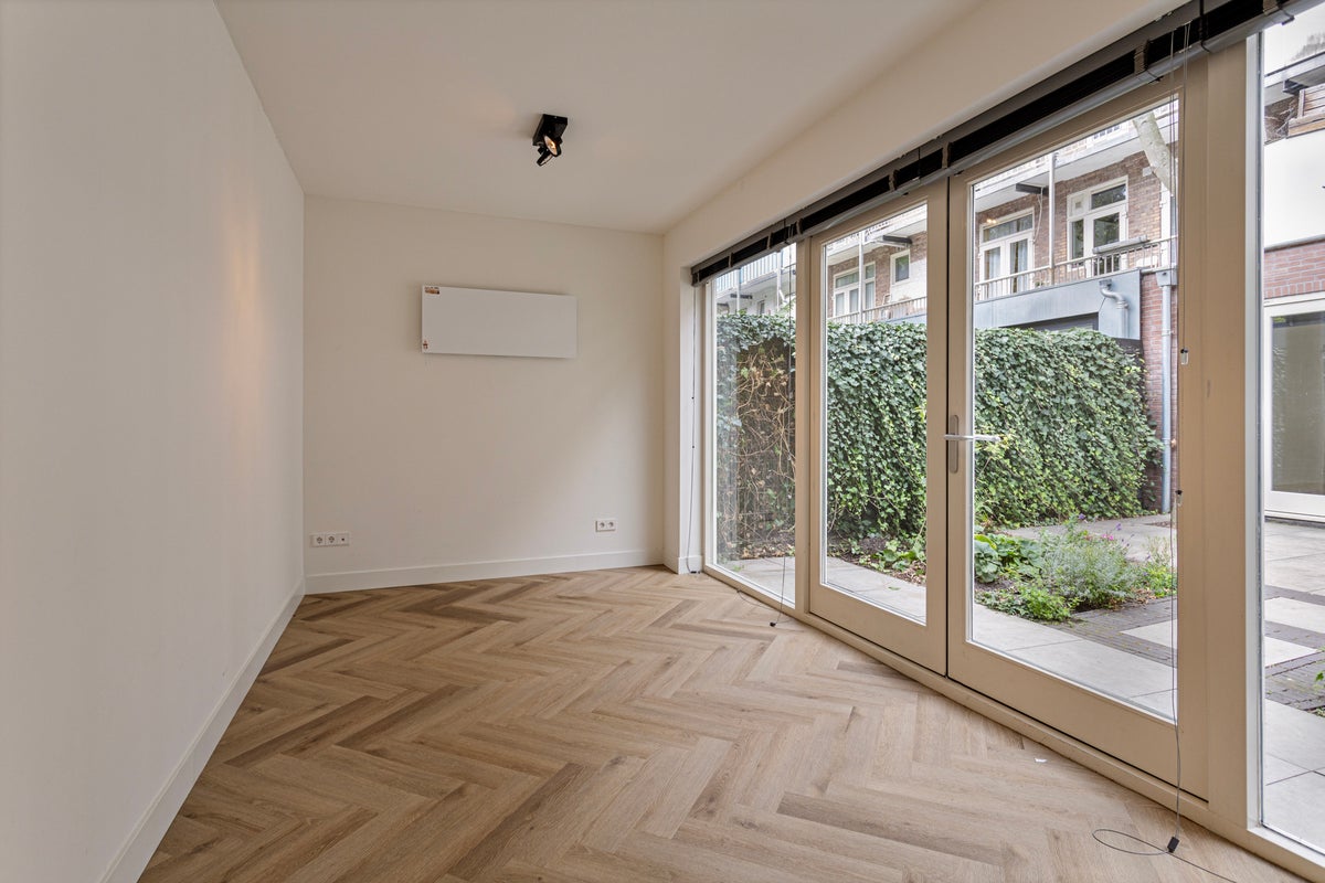 Beschikbaar per 01 november 2025: prachtig gerenoveerde benedenwoning met tuin en tuinhuisje! Aan de voorzijde bevindt zich de ruime woonkamer met luxe open keuken. De keuken is uitgerust met een koel,- vriescombinatie, wijnklimaatkast, inductiekookplaat, vaatwasser, afzuigkap, combioven en Quooker. Aan de achterzijde zijn de twee slaapkamers (7,5m2 & 12,4m2). Vanuit beide slaapkamers is de…